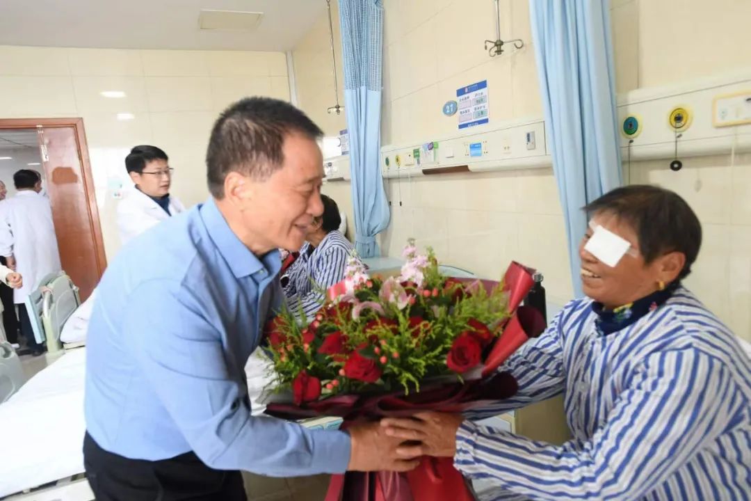 ▲匡錫和董事長(zhǎng)看望做白內(nèi)障手術(shù)的受助對(duì)象。